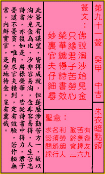 关帝灵签第九十一签:癸甲 (中吉) 朱衣暗点头
