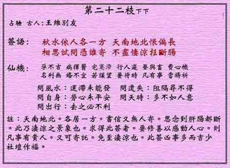 黄大仙灵签第二十二签:陈妙嫦思春 (下下灵签)