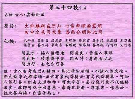 黄大仙灵签第三十四签:虞舜耕田 (中吉灵签)