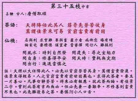 黄大仙灵签第三十五签:唐僧取经 (中吉灵签)