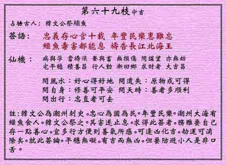 黄大仙灵签第六十九签:韩文公祭鳄鱼 (中吉灵签)